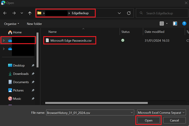 4. Press 'choose file' and search for the file previously exported in the pre migration steps (should be in your OneDrive folder)