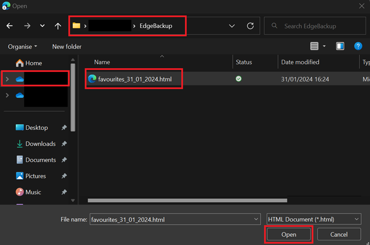 3. Press the drop down menu and choose 'Favourites or bookmarks HTML file'