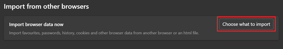2. Go to the section import from other browser, and press 'Choose what to import'