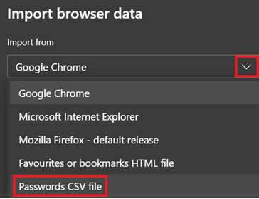 4. Press the drop down menu and choose 'Passwords CSV file'