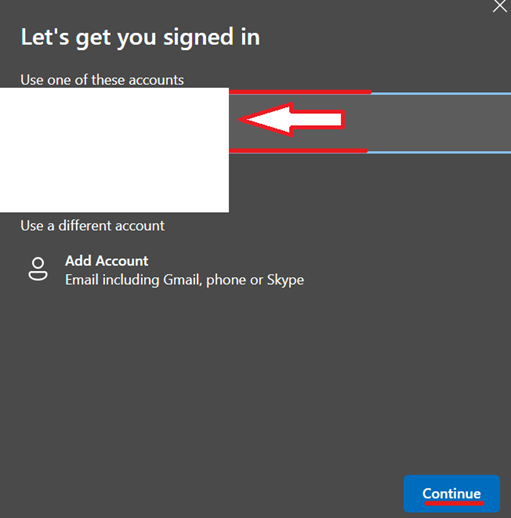 6. 'Situational' If the new account isn't available in the list, choose 'Add account' (shown in the previous step) and login to your new account and complete the sign in flow.