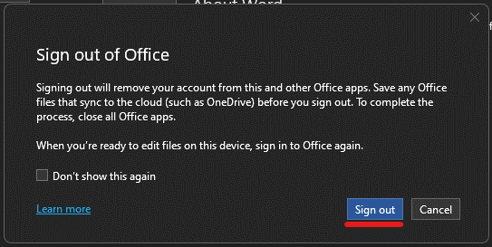 Sign out from Office desktop Apps.