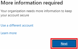 3. On the 'More information is required' page press 'Next'